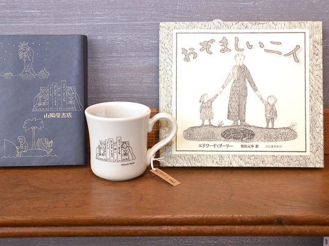 マグカップのイラストレーションは和田さんがデザインした山陽堂書店のブックカバーから生まれた。線の太さや形にこだわり、製品になるまで3年かかったという。
