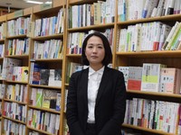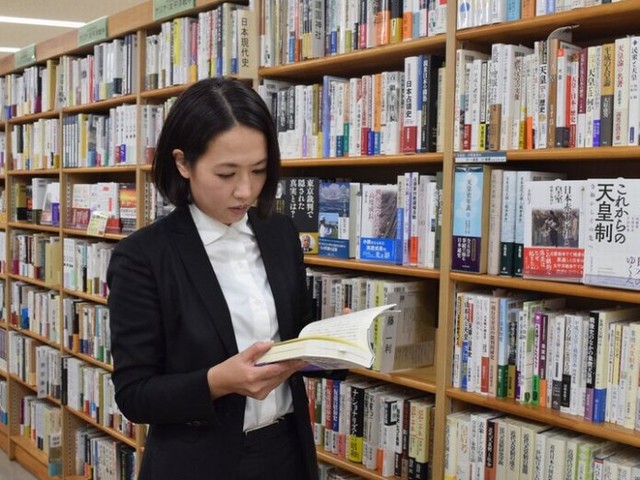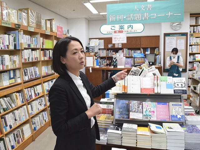 ジュンク堂書店4 階の人文書売場で、副店長の森暁子さん