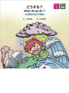 三品:初回作『どうする?~What do we do?~』(世界書院、2018)では、私たちが住んでいる社会の「当たり前」の中に潜む「見えない障壁(バリア)」を絵本という形で問いかけ、描き出そうとしていましたが、今回は、「災害時の命の平等」をテーマとした理由はなんでしょう?