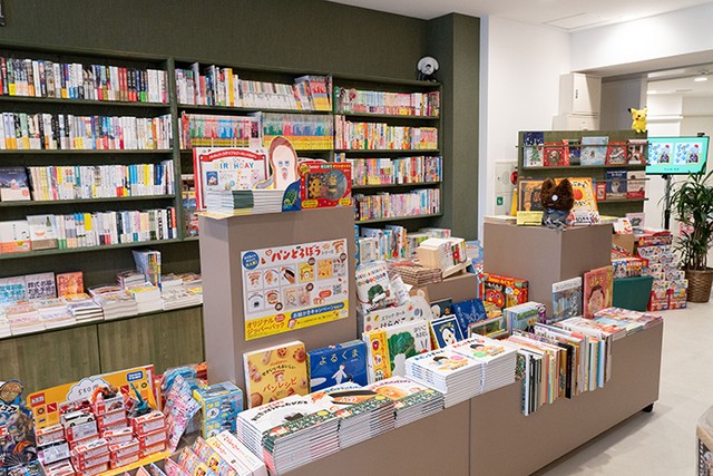 児童書や絵本のコーナー。奥のフェア台では、クリスマスにちなんだ絵本を取り揃えている。休日にもなると、家族連れで本を選ぶ姿もよく見られる。