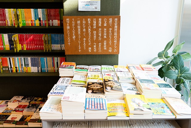 父・弘志さんが昭和の時代に作った、「南天堂書房」の広告を集めたブックカバーや袋。このブックカバー目当てでたくさん本を買ってしまいたくなる。
