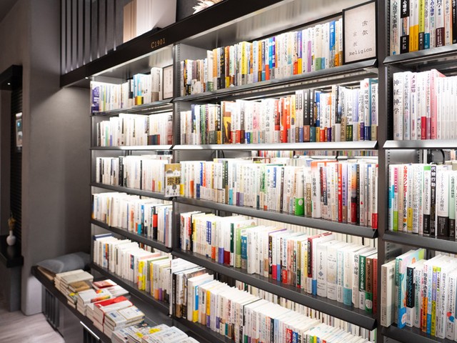 人文書コーナー。基本は棚差しで、できるだけ多くの本を並べる