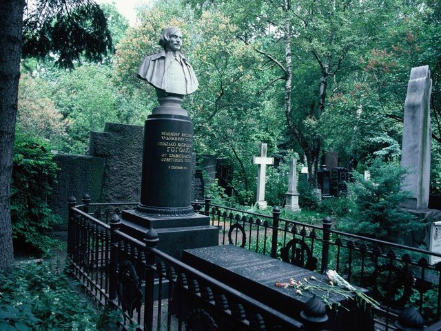 ロシア帝国出身の作家・ニコライ・ゴーゴリ(1809~52)の墓=モスクワ・ノボシェビチ修道院の付属墓地