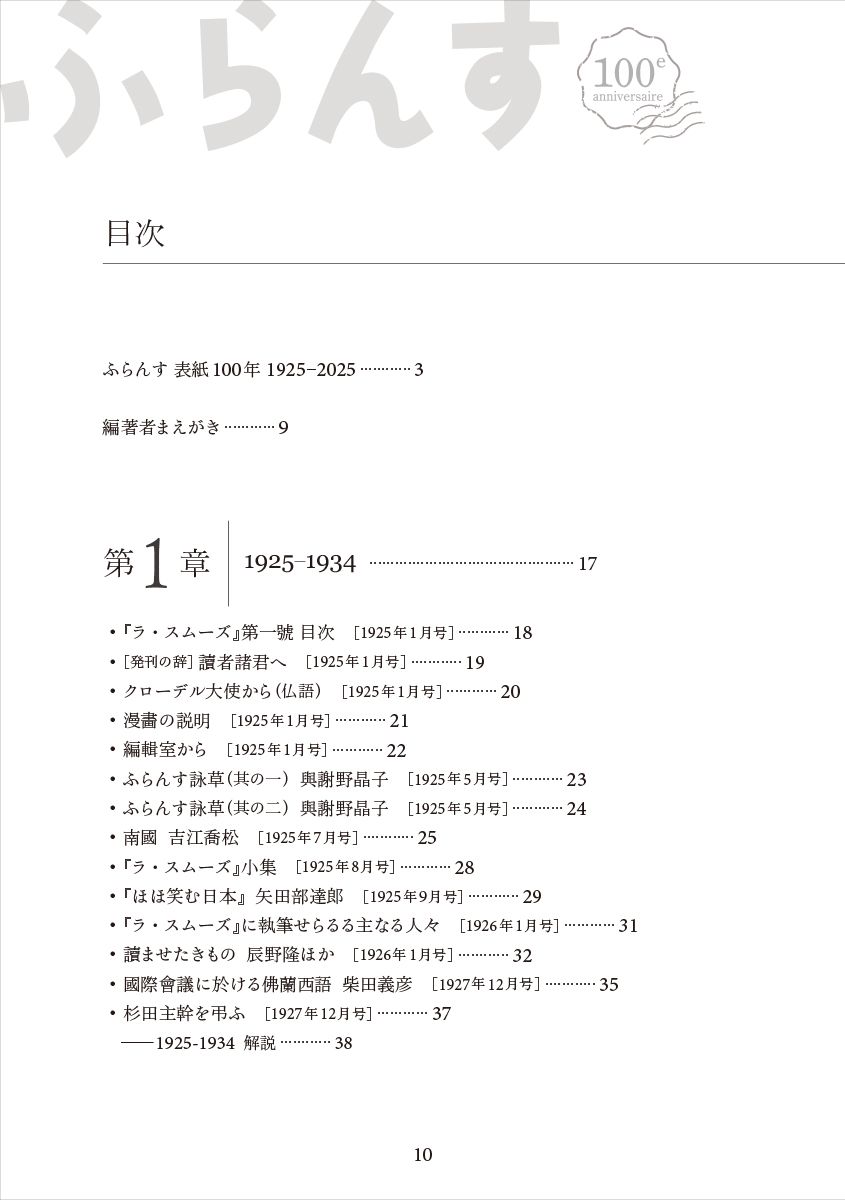 ▽『「ふらんす」100年の回想』目次
